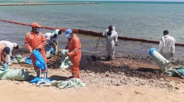 احتواء بقعة تلوث بترولي بالبحر الأحمر