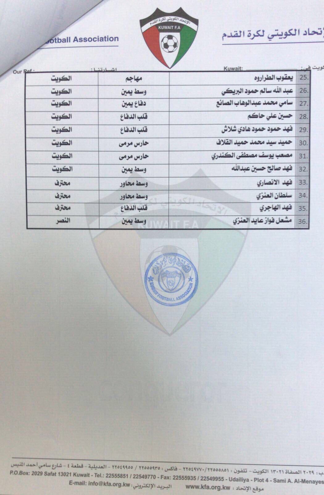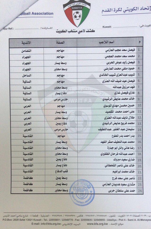 لاعبا للمنتخب الوطني المدعوة لخوض خليجي 23 علي ارض الكويت وهم : من ( الكويت) يعقوب