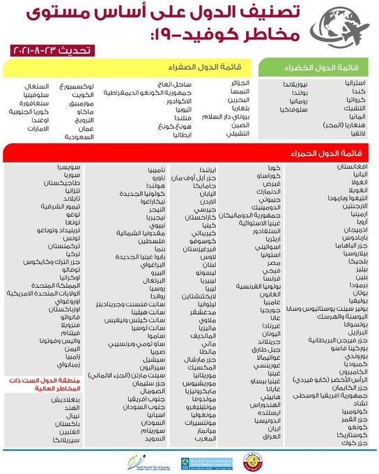 تحديثات قوائم السفر للبلدان بناءً على تصنيف مخاطر كوفيد -19.