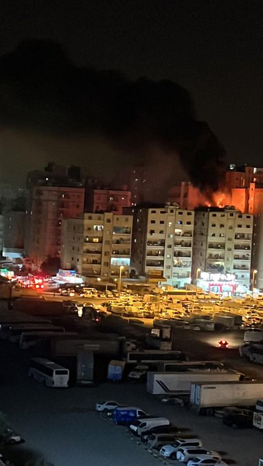 سيارات اسعاف تتجه للتعامل مع الحريق ولم يعرف بعد ما إذا كانت هناك اصابات.