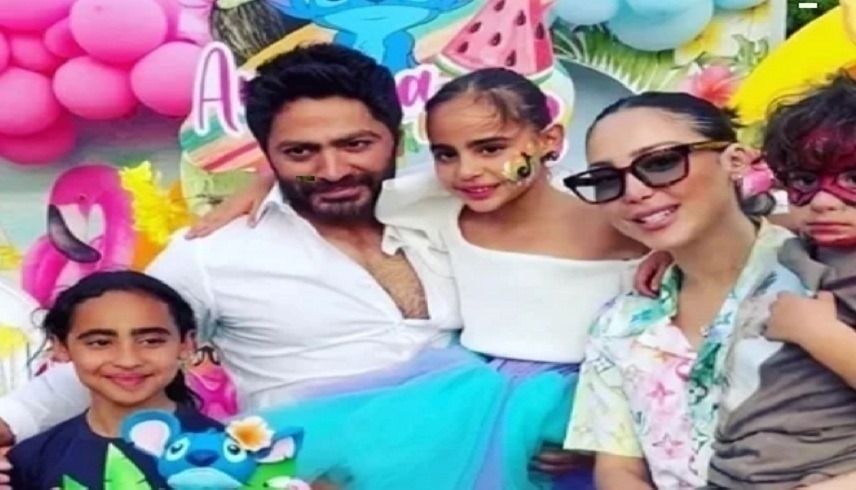 تامر يحتفل بعيد ميلاد ابنته أمايا مع بسمة بوسيل (تويتر)